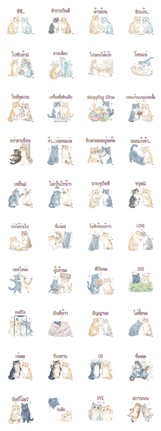 An adorable couple cat sticker set expressing love in every momen. Perfect for couples and cat lovers to share feelings easily in daily chats.