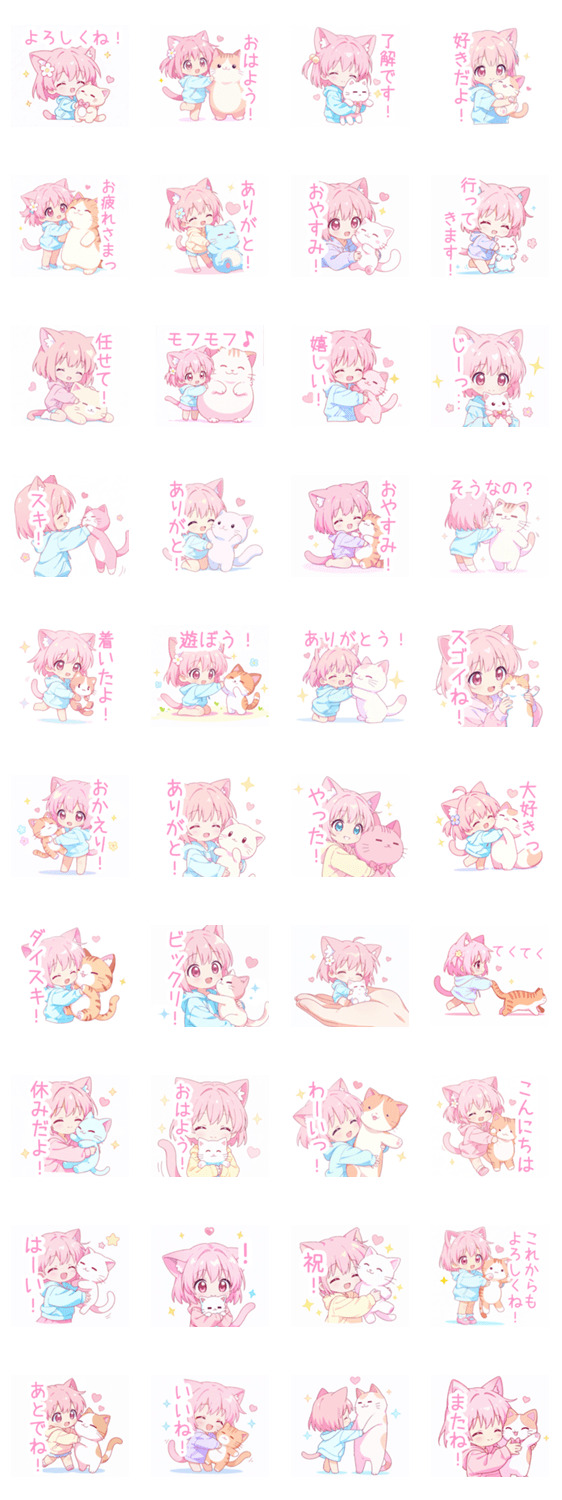 | スタンプ説明 | 日常的なセリフ付きです。ねこ/猫/ネコ/猫耳/パーカー/女の子/女子/かわいい/可愛い/日常/毎日/挨拶/ピンク/ふわふわ/もふもふ/ぬいぐるみ/ゆるい/ちびキャラ/ミニキャラ |