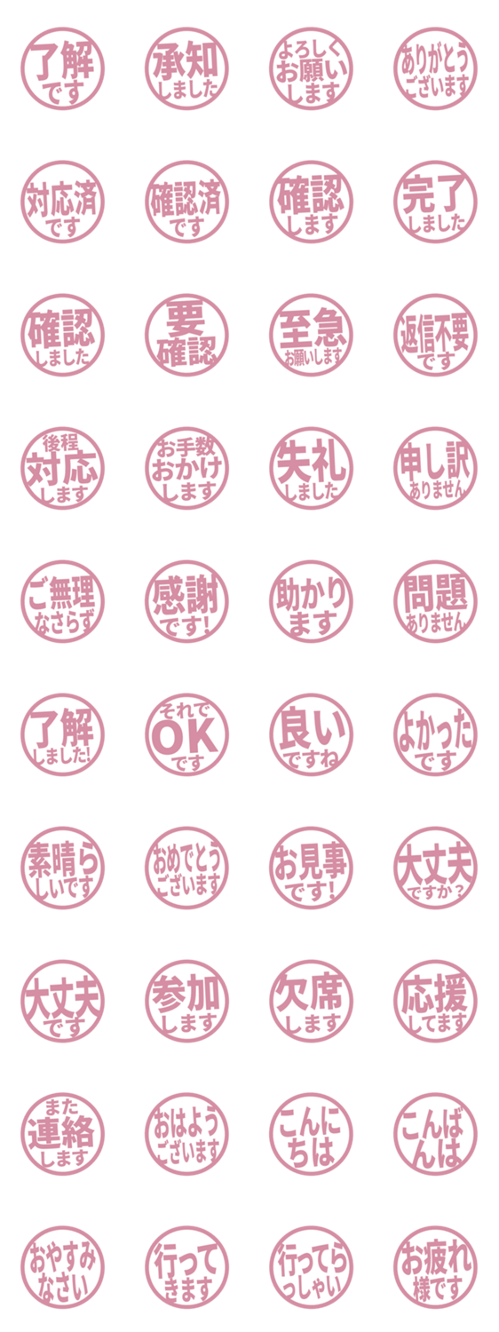 シンプルな敬語のはんこ風スタンプです。毎日の連絡や仕事の返事に使いやすいデザインです。