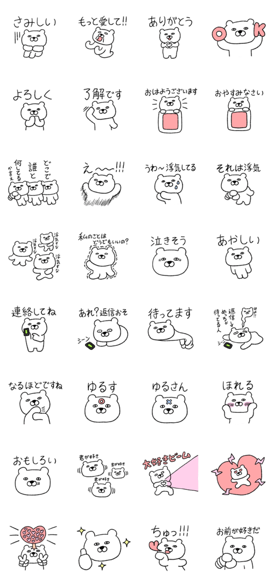 恋人のことが好きすぎて浮気を疑うクマスタンプ。恋人が飲み会に行く時などに。夫婦でも使えます。 (くま,ベアー,彼氏,彼女,カップル,恋人,嫉妬,浮気,不倫)