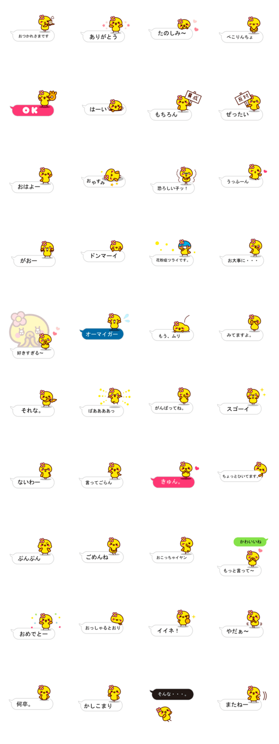 | スタンプ説明 | ちっこいひよこがふきだしにちょんとのってます。その2 |