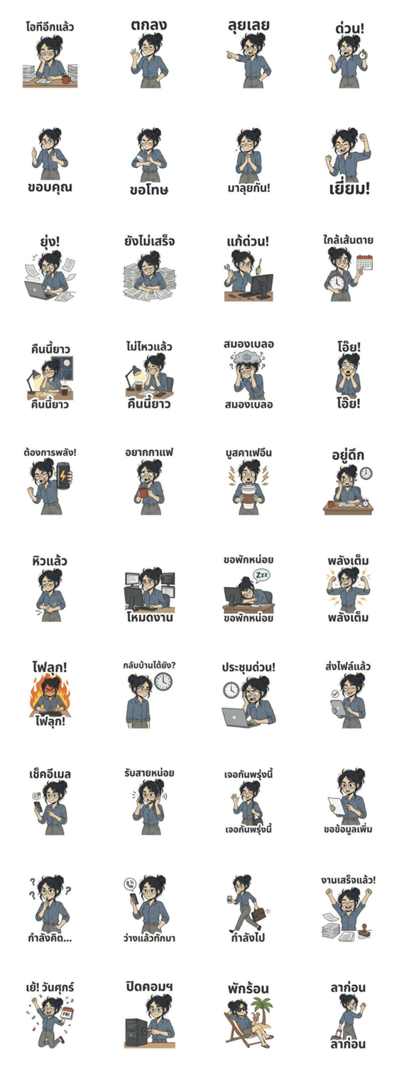 | スタンプ説明 | For the dedicated office warrior who lives and breathes work! Express your workaholic soul with these cool stamp-font stickers. Perfect for any deadline. |