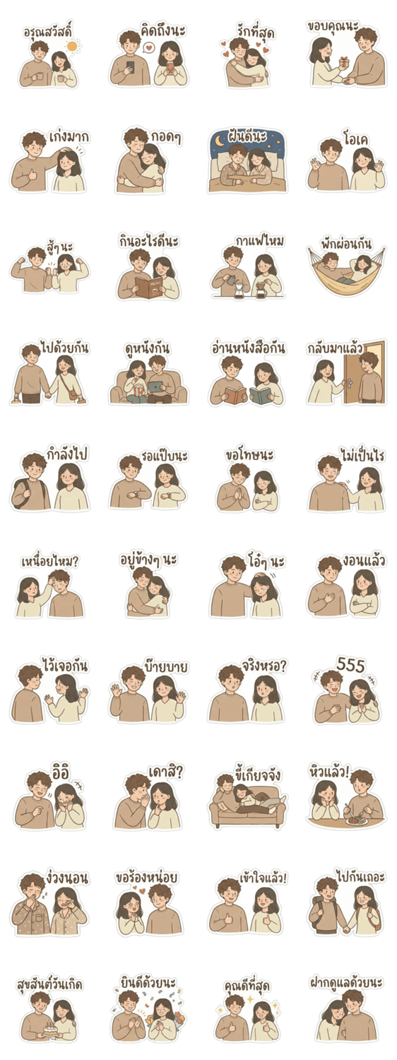 | スタンプ説明 | Share the warmth of everyday moments with this minimalist couple sticker set. Perfect for adding a touch of love and cozy, slow-life vibes to your chats. |