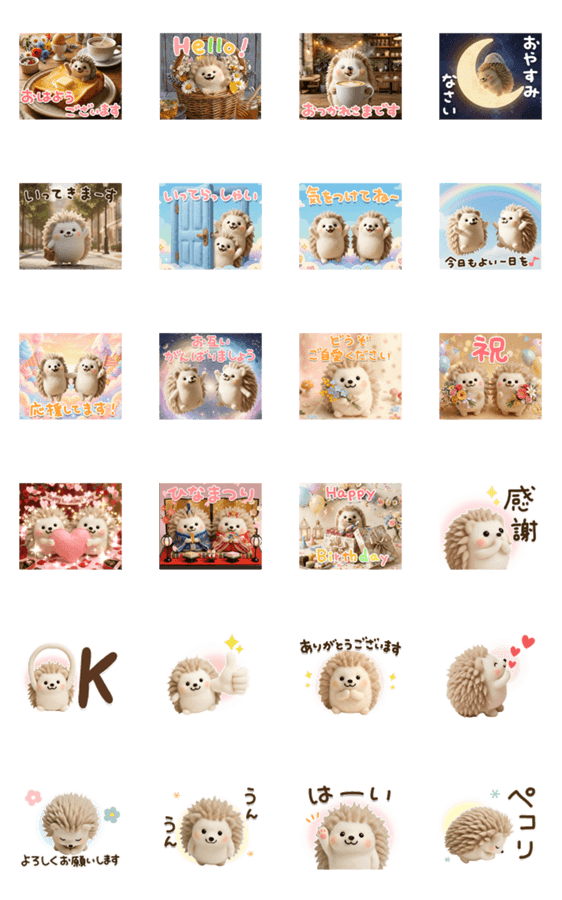 | スタンプ説明 | ぷっくりはりねずみさんがトークのお手伝いします♪ 誕生日/ひな祭り/お祝い/挨拶/気遣い/バレンタイン |