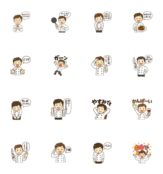 | スタンプ説明 | Cute and practical stickers for chefs! Packed with useful kitchen phrases , perfect for restaurant staff communication and daily chats. |