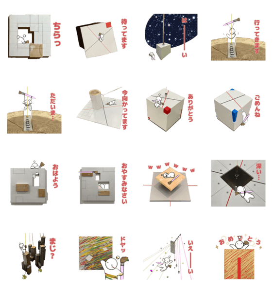 造形作家市野泰通の作品と、市野の「i」を模したキャラクターがコラボしたスタンプです。