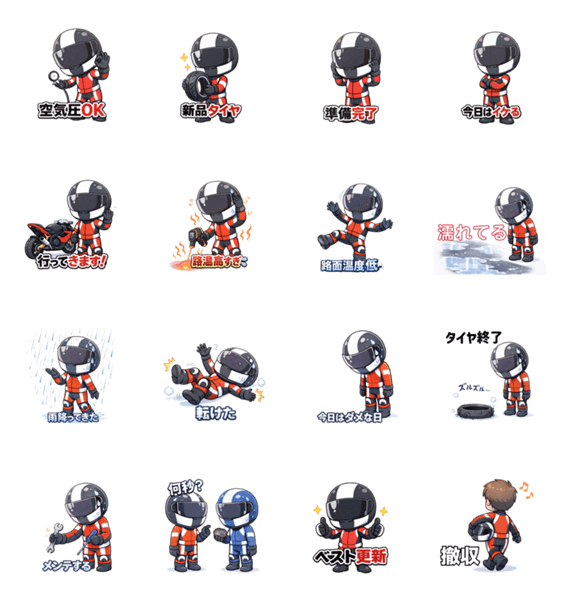 サーキットライダーの日常会話で使えそうなスタンプを作りました。