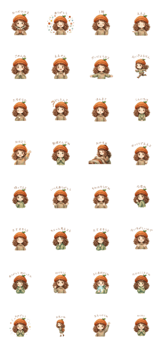 | スタンプ説明 | 愛媛・松山のやさしい方言を使った、ふんわり気持ちが伝わるスタンプです。 家族や友だち、毎日の会話に使いやすい言葉を集めました。 |