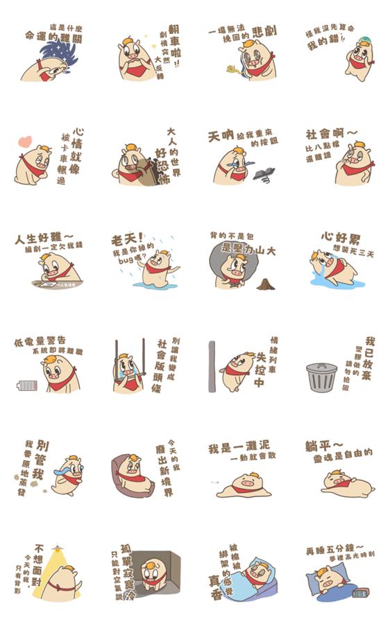 | スタンプ説明 | Jizdo, an innocent and childlike piggy, expresses his small protest against the world with candid and fearless honesty! |