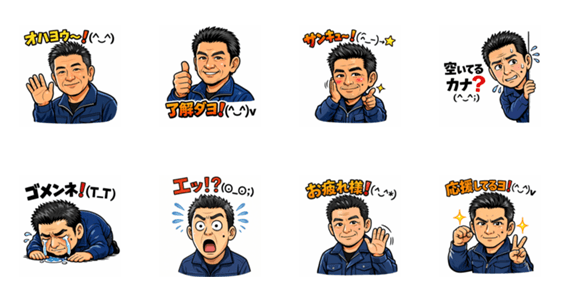| スタンプ説明 | 巷で話題の「おじさん構文」を使いこなす、シュールで愛嬌たっぷりな作業着おじさんのスタンプです❗(^^) 絶妙な絵文字使いと、思わずクスッとしてしまうバズる風のイラスト |