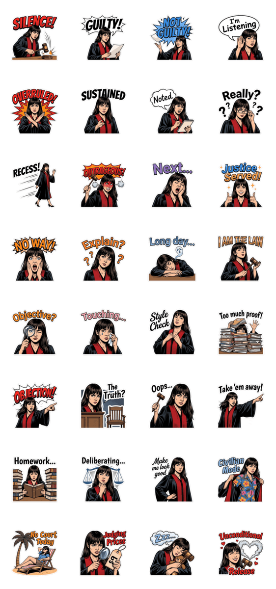 | スタンプ説明 | 静粛に!ドラマチックで表現豊かな裁判官スタンプが登場。アメコミスタイルで、あなたのチャットに判決を下します! |