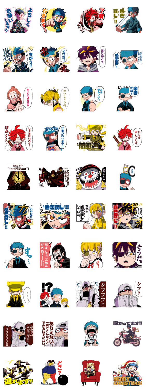 | スタンプ説明 | 世界一わかりやすくておもしろいSFループバトルまんが『運命の巻戻士(月刊コロコロコミック連載中)』のスタンプ第1弾! |