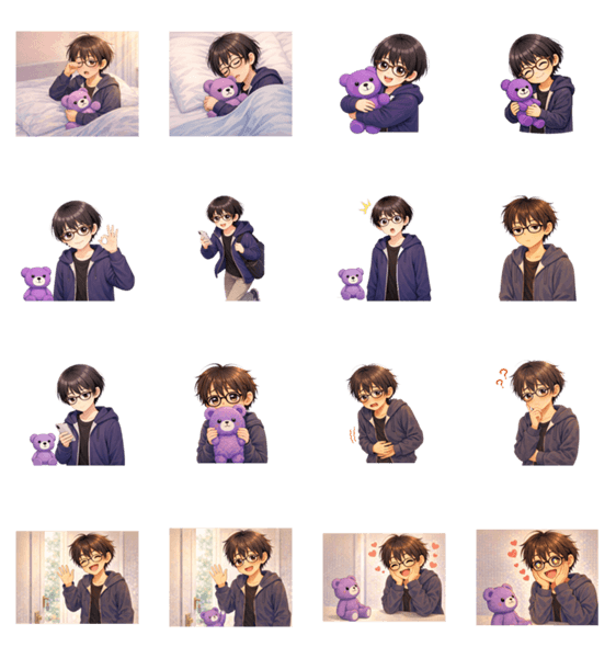 | スタンプ説明 | くまと一緒に過ごす、ショートカットの女の子の日常スタンプです。 あいさつや気持ちをやさしく伝えられ、毎日のLINEに使えます。 |