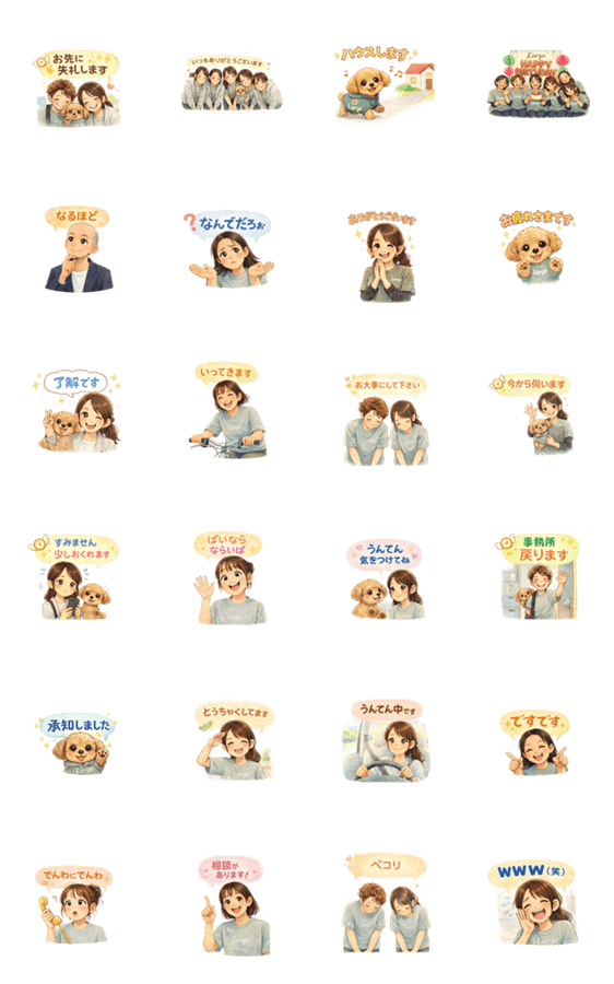 | スタンプ説明 | 日常のやりとりで使いやすい、スタンプです。 「ありがとうございます」「了解です」「お疲れさまです」など、 お仕事でもプライベートでも使える言葉を集めました。 |
