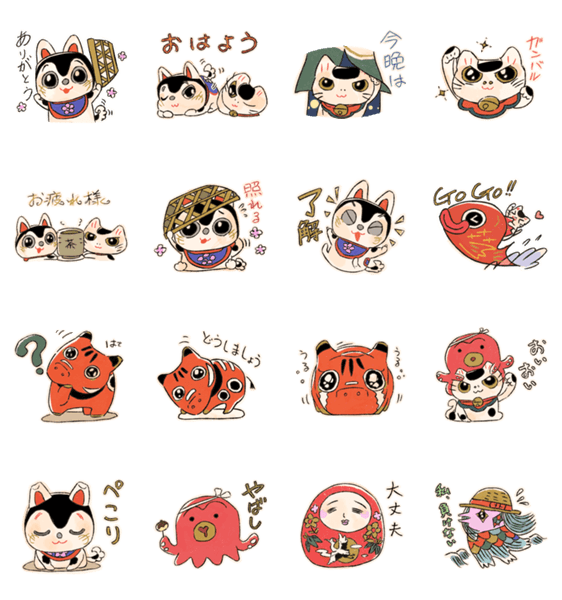 母が描いた張子の狗のキャラクターたちのスタンプです。