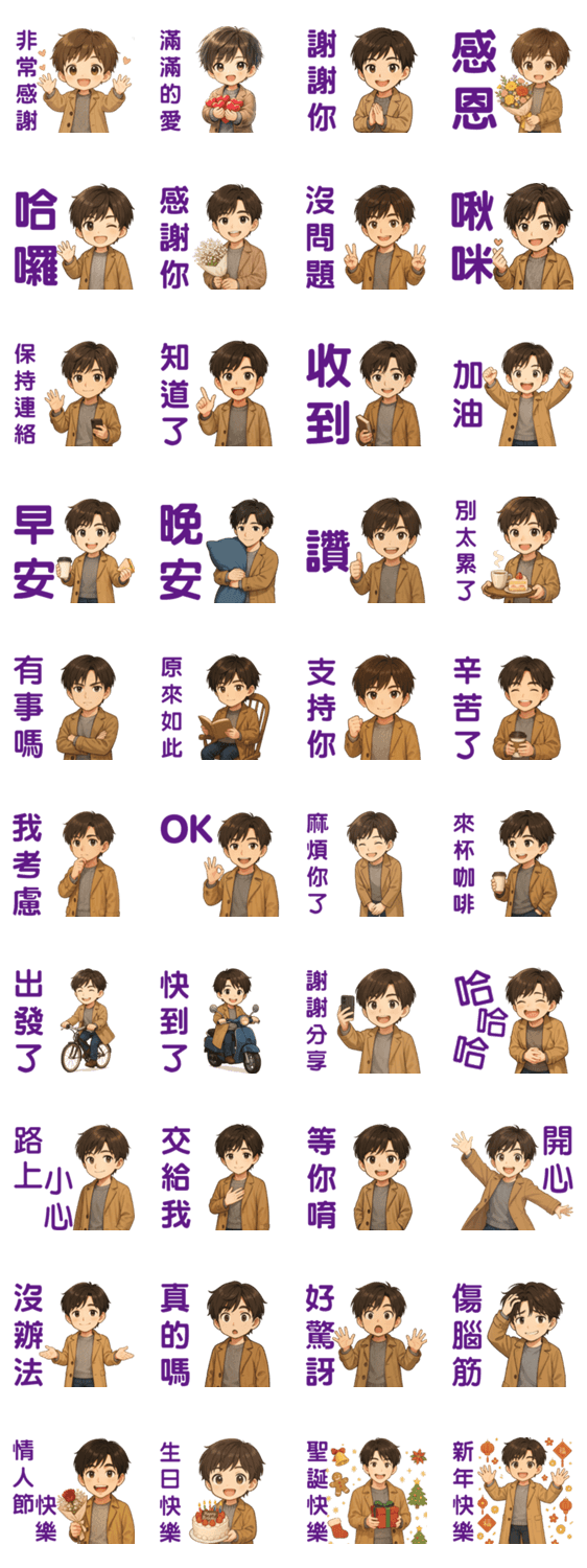 | スタンプ説明 | Handsome boy - greeting phrases |