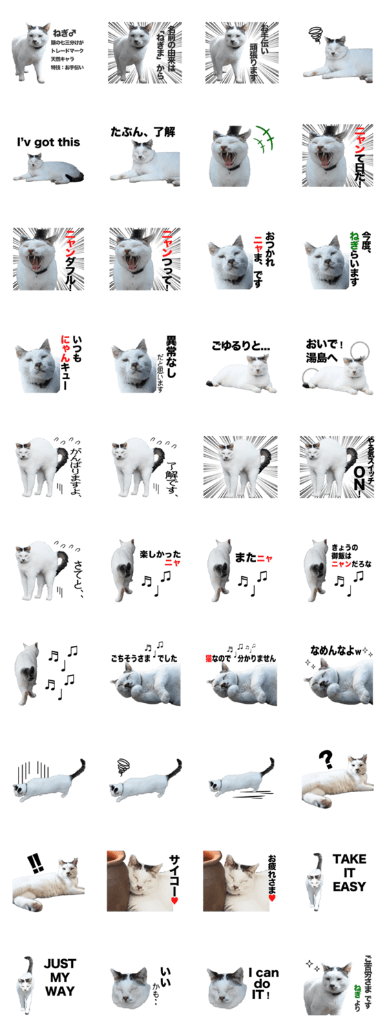 | スタンプ説明 | 「熊日猫島」のライブカメラでおなじみ、熊本県の猫島・湯島に暮らす愉快な猫たちがスタンプになりました。ⓒ熊日デジタル |