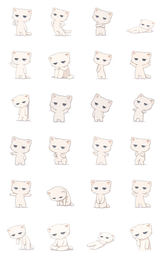 | スタンプ説明 | 感情を出したくない時にそっと使える、無表情ネコ。気持ちは乗せたくない、そんな瞬間にちょうどいい存在感。今日もだるそうに立ち、座り、寝転ぶ姿は可愛そうなネコ。 |