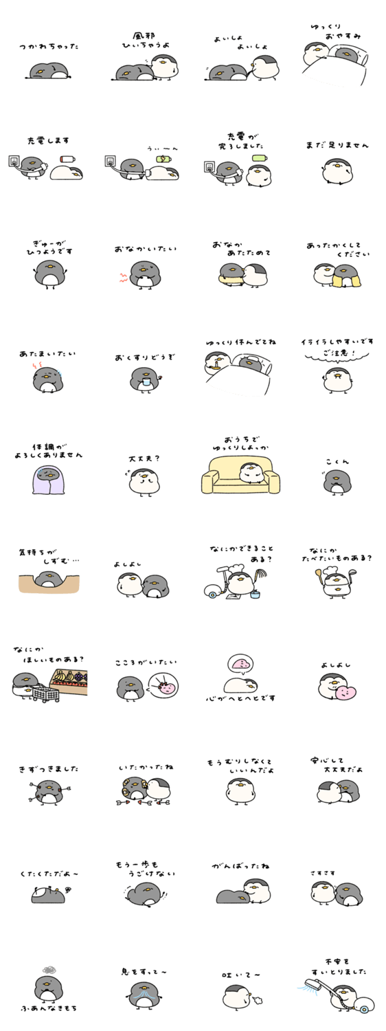 優しき気遣ったり、疲れたときに弱音を吐いたり。 そんな時に使えるペンギンのスタンプです。