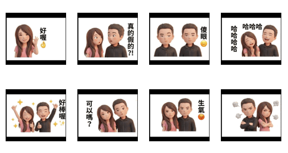 | スタンプ説明 | Adorable 3D couple stickers! From "OK" to "Hmph", perfectly expressing the sweet interactions between couples. Great for daily chats with your loved one! |