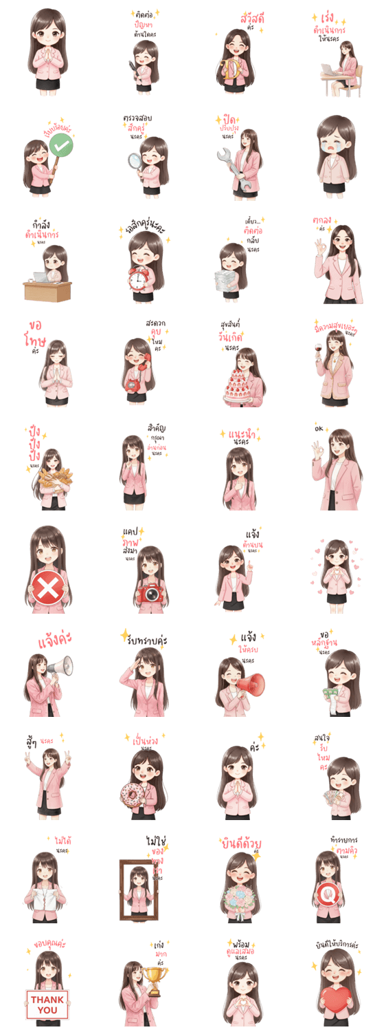 | スタンプ説明 | General speaking, office worker, teacher, positive encouragement, lose, keep fighting, okay, agree, got it , Pink tone These stickers will show up extra large in chats. |