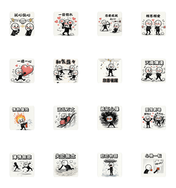 動く恋と人生のあいだで。四字熟語スタンプ
