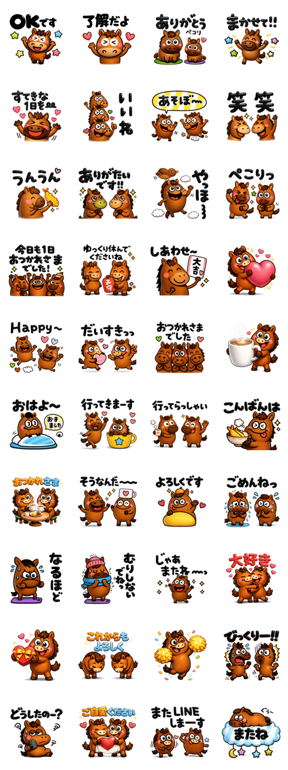 ちょっと不細工な馬さん♡ 見やすいBIGな文字♡気持ちを伝えるモンスター♡毎日使える言葉を集めました。