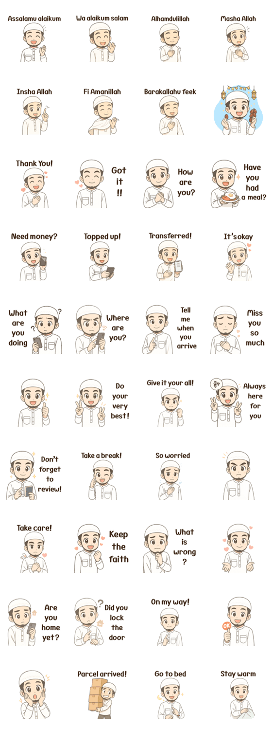 | スタンプ説明 | (English Version) A kind Muslim dad with his Islamic family. Perfect for greetings, work chats, and daily life, warm, caring, and lovely stickers for every day. |