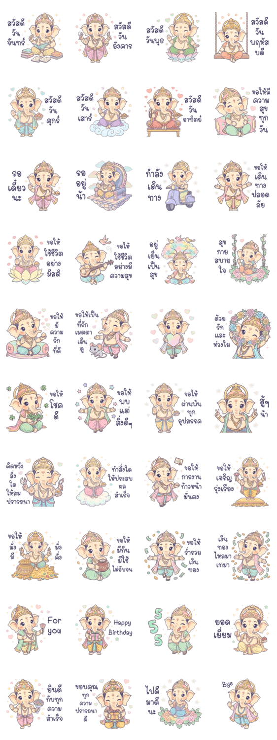 | スタンプ説明 | Lord Ganesha is cute, grants blessings and can be used every day. |