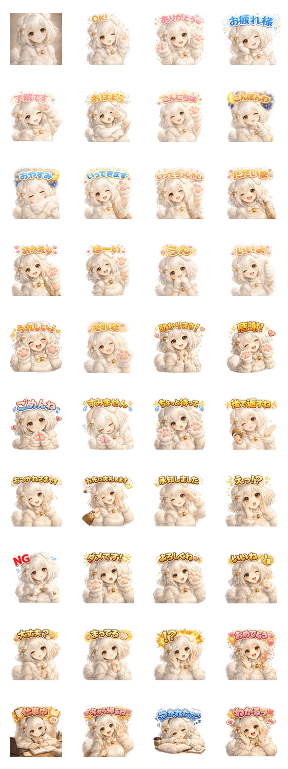 | スタンプ説明 | ふわもこ犬っ子「ほたてちゃん」の日常スタンプです あいさつ・返事・お礼・お仕事のやりとりまで、やさしく使えるセリフをたっぷり収録♪ |