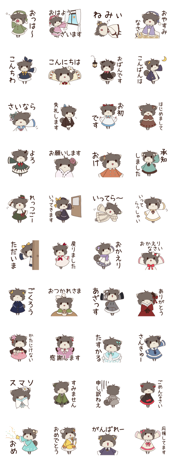 | スタンプ説明 | 自分で服を仕立てて着ている、きつねっぽい不思議な存在『ころもぎつね』。 多分かわいくて使いやすいスタンプ群です。 ゆるいのと丁寧なのを揃えた便利セット。 |