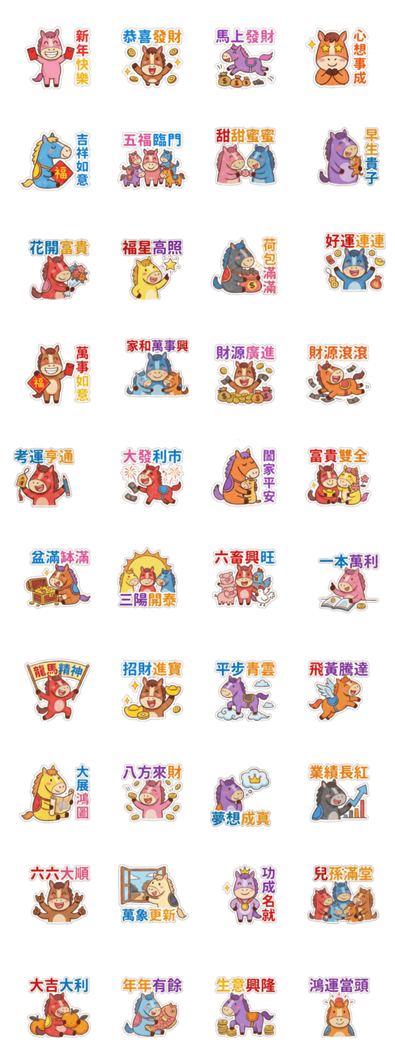 | スタンプ説明 | Boost your luck with these adorable crayon pony stickers! Packed with joy, wealth, and sweet blessings.Send a smile and make every message absolutely magical! |