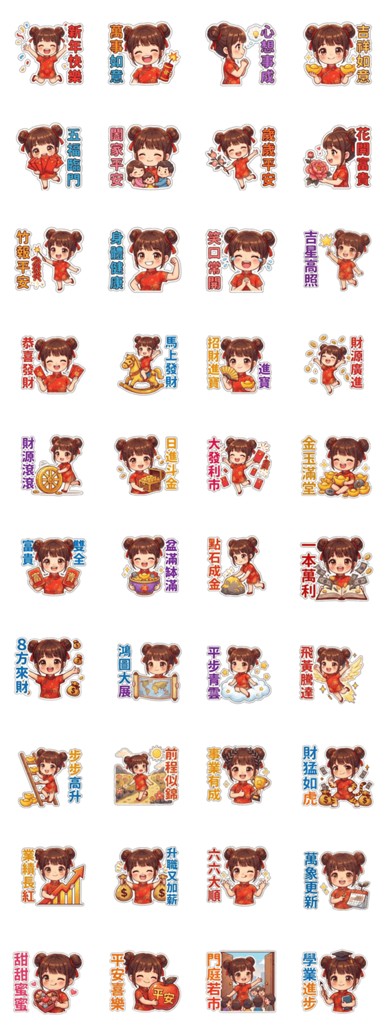 | スタンプ説明 | Celebrate CNY with this cute Qipao Girl! Send wishes for wealth, promotions, and good luck. The perfect stickers for friends and bosses! |