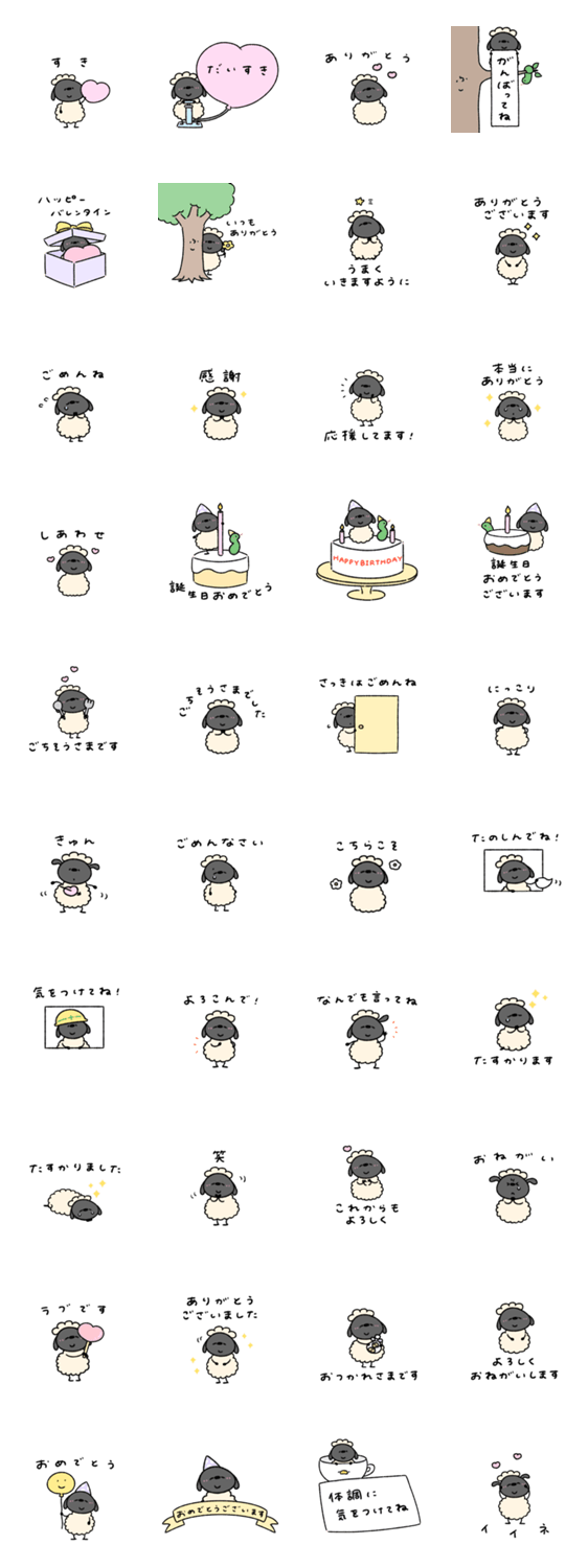 家族や友達、恋人に気持ちを伝えるひつじのスタンプです。