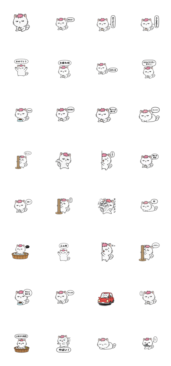 白ネコのあいうえお・・・ってるスタンプ