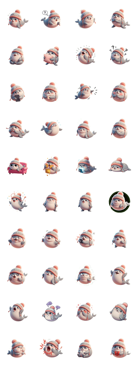 | スタンプ説明 | ピンクのアザラシが許しを求める、うるうるした目でごめんなさい、必死にお願いする可愛い表情、LINEスタンプ向け |