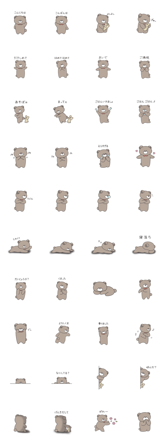 自由気ままなくまてんのスタンプです。 日常/ほのぼの/気遣い/あいさつ/甘えん坊/シンプル