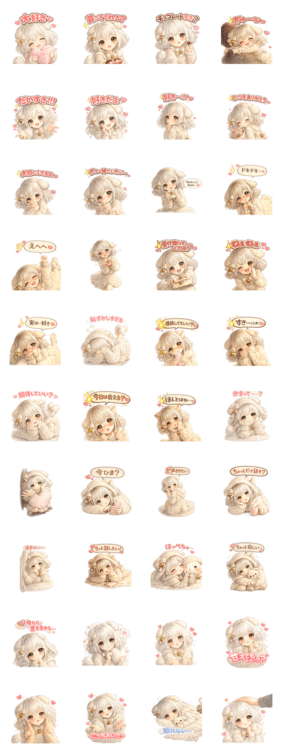 このスタンプ、イラストが優しくてめちゃくちゃ可愛いよ! 挨拶系も多いから、誰にでも使いやすいのが助かる✨ モフモフ不足の人はぜひ覗いてみて〜! -