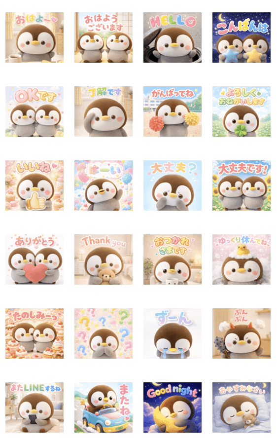 小さなペンギンの赤ちゃん、ぺんぺんが飛び出して動く♪日常会話・挨拶のポップアップスタンプです♪