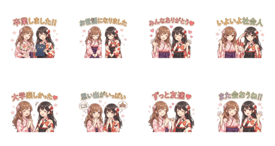 | スタンプ説明 | えみちゃんの大学卒業式 4年間ありがとうの気持ちを込めて |