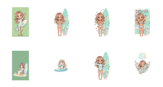 | スタンプ説明 | 小麦色の肌にパステルカラーのファッションが映える、明るくポジティブな「愛されギャル」のサーファーガールたちが、トークを楽しく彩ってくれるはずです。 |