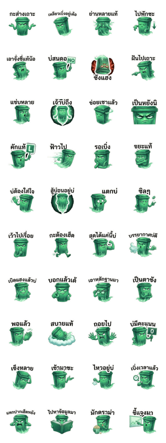 | スタンプ説明 | Meet the Ghostly Green Trash Can! He judges your life choices, your outfit, and especially your messages. This is not your average garbage bin |