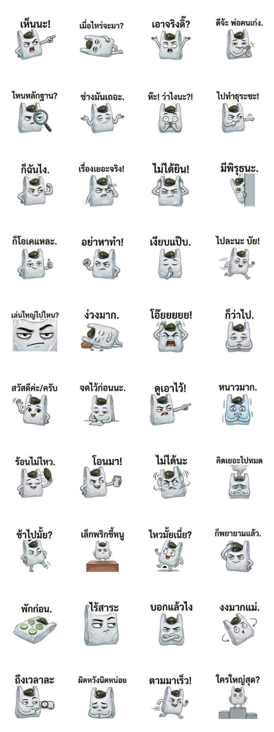 | スタンプ説明 | Meet Sergeant Gob, the miniature plastic bag who thinks he's the expert of life. He knows everything about everyone, except how to get himself recycled! |