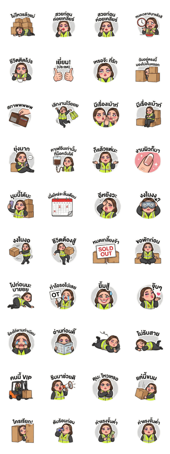 | スタンプ説明 | Send this to your overwhelmed colleague who is carrying the entire company She's the most beautiful warehouse worker ever, but life is hard |