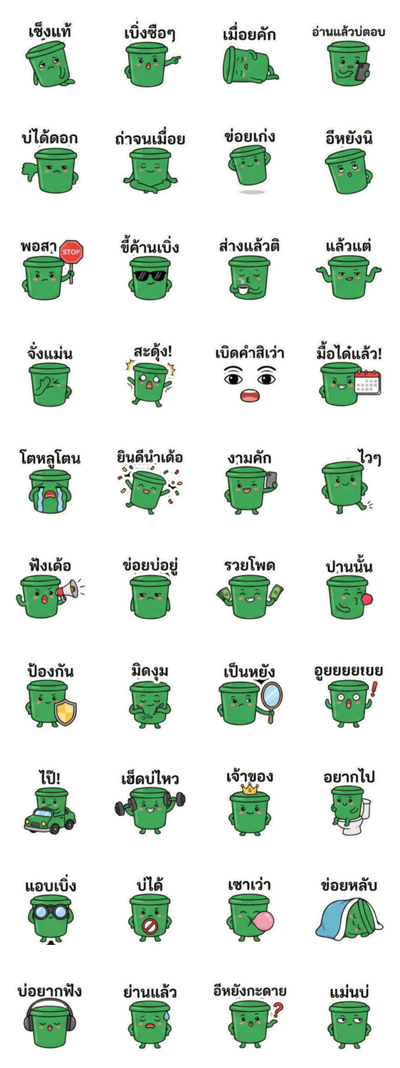 | スタンプ説明 | Meet the sassy, chubby green plastic bin. It judges everything: 'Disgusting,' 'Useless,' 'Wasteful.' But even with all that attitude, it can only manage |