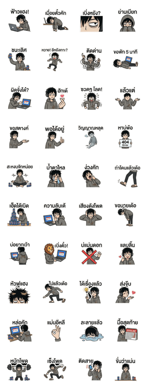 | スタンプ説明 | For coders who live on caffeine and fight endless bugs! This useless (but cute) programmer speaks Northeastern Thai slang. |
