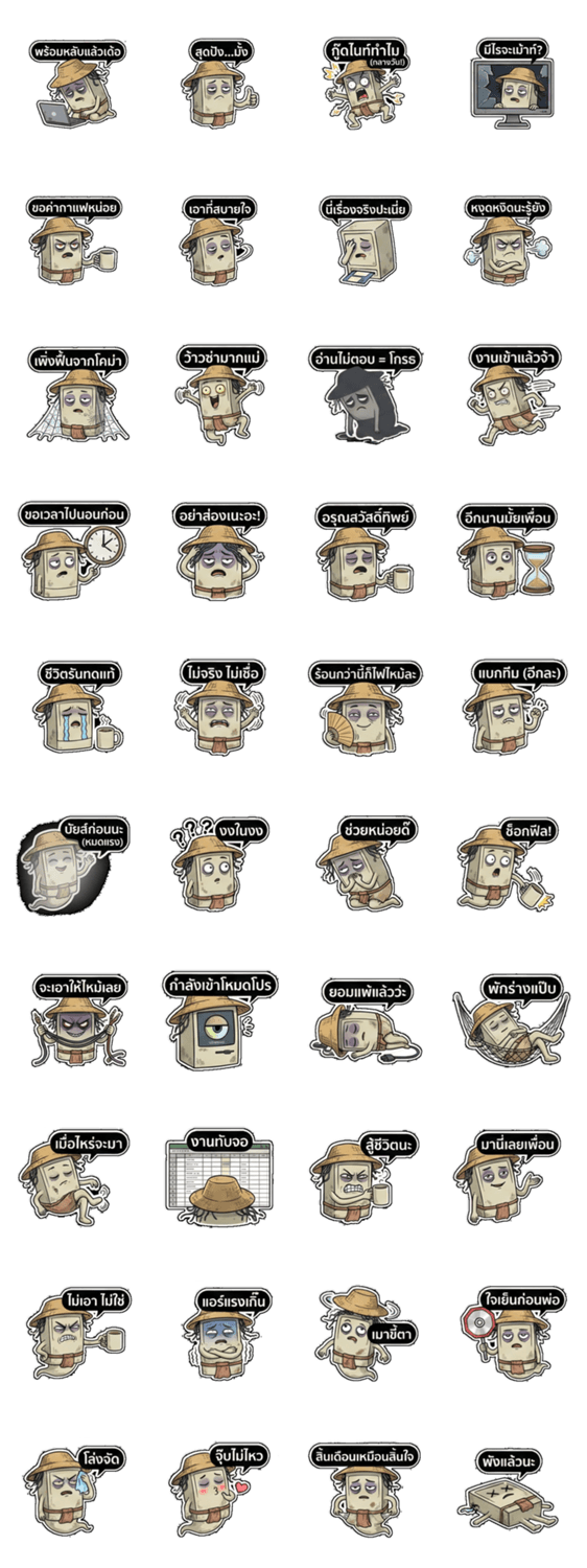 | スタンプ説明 | The ultimate sticker pack for IT workers facing relentless bugs and system freezes! Embrace the Isan spirit to fight those deadlines. Tease your team |