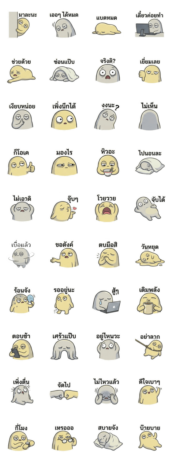 | スタンプ説明 | If your life battery is stuck at 10% and you just can't recharge, these soft, squishy blobs are for you! Perfect |