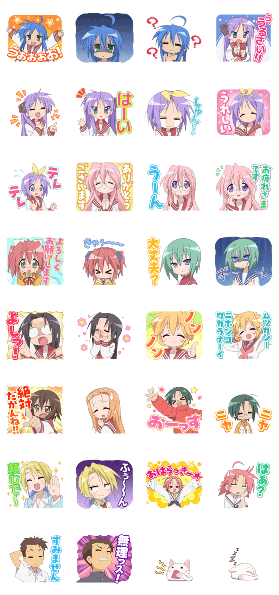 | スタンプ説明 | TVアニメ『らき☆すた』のLINEスタンプが登場! あの賑やかなメンバー達と一緒にトークを楽しもう♪ |