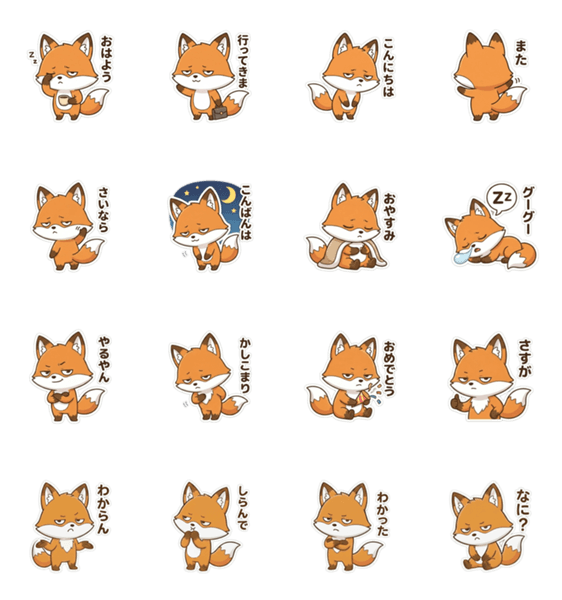 | スタンプ説明 | やる気はないけど、生きている。無表情でダルそうなきつねが、あなたの気分をそのまま代弁します。疲れた毎日にちょうどいい共感キャラです。 |